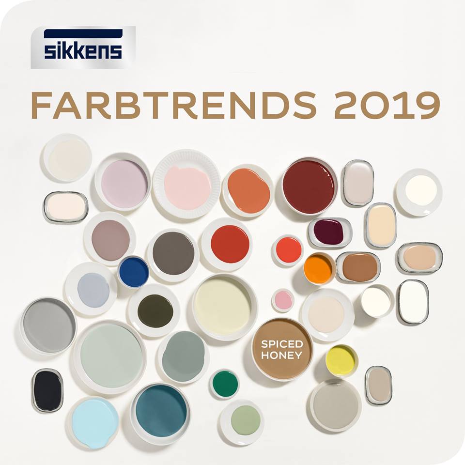 Farbvorlieben spiegeln den Zeitgeist wider. Die Trendfarben 2019 aus dem Hause Sikkens sind weiche und behagliche sowie intensive und leuchtende Farbtöne, die Räumen genau die frische und optimistische Ausstrahlung geben, die dem vorherrschenden Lebensgefühl entspricht. Das Herz der vier spannenden Farbpaletten bildet Spiced Honey, die Farbe des Jahres 2019.